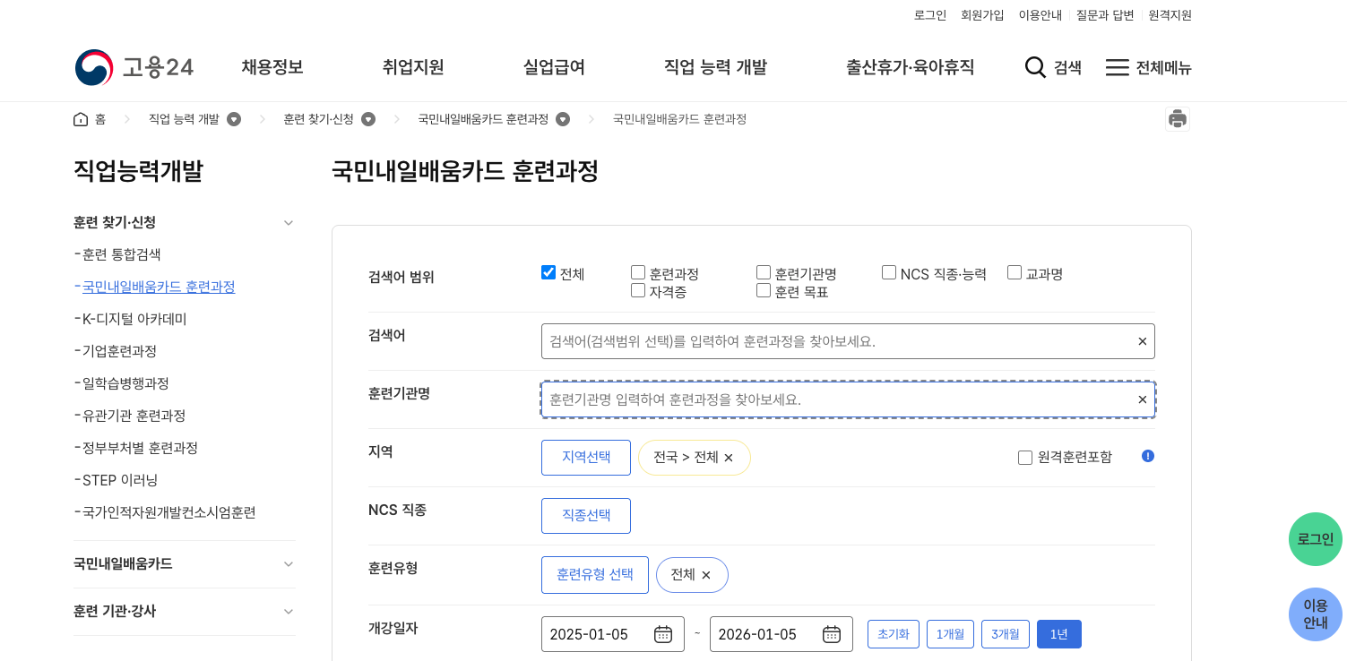 1. 훈련 과정 검색 및 등록
