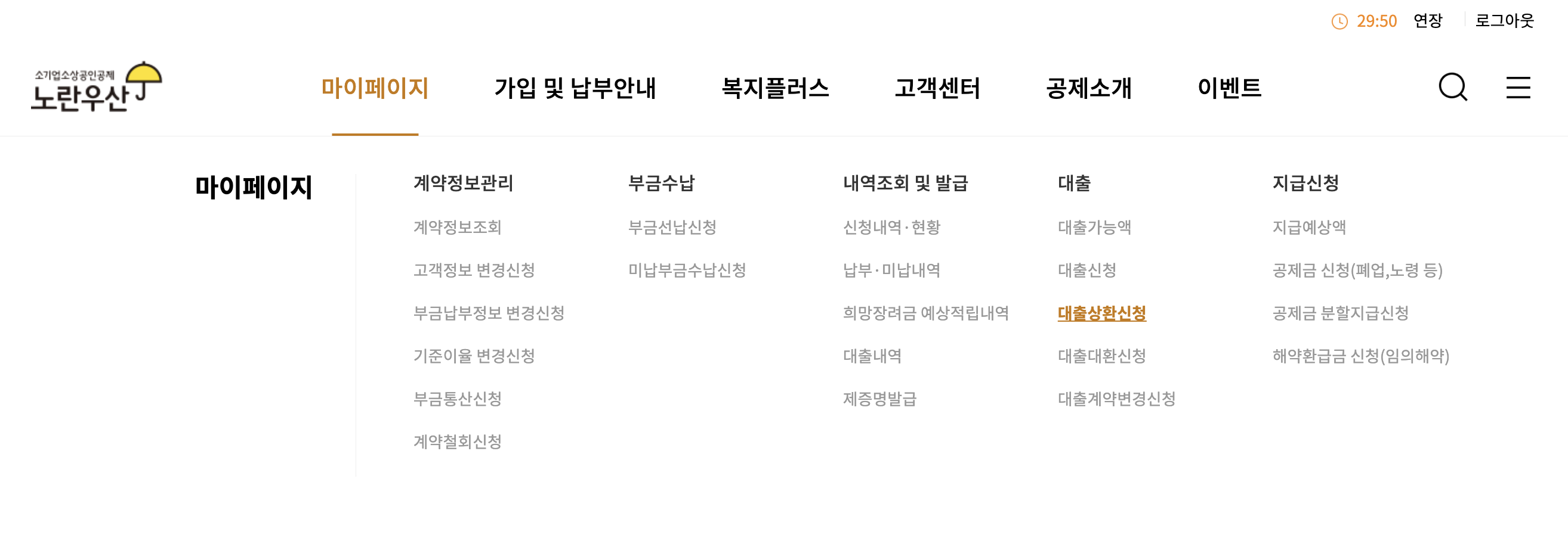 노란우산공제 대출은 중도 상환 수수료가 없습니다.